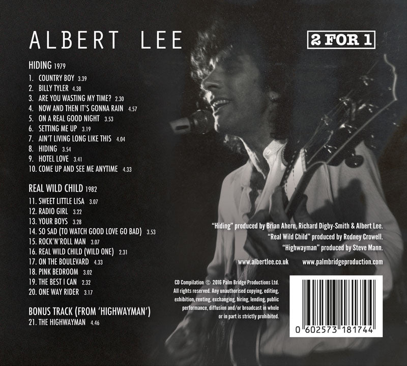 A limited edition of two of Albert's favourite albums - "Hiding" from 1979, and "Real Wild Child" from 1982. Includes special bonus track of "The Highwayman" from Albert's most recent acoustic album of the same name (also available in the shop).
